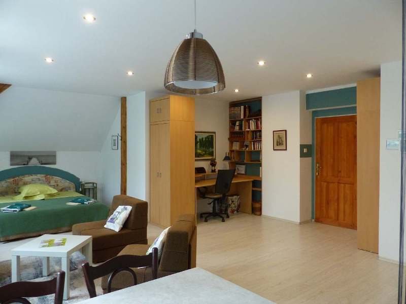 - Příslušenství: indukční dvouvařič, jídelní pult, koberec, koupelna s wc, křesla, kuchyňská linka, lednička, mikrovlnka, nádobí pro 4 osoby, plovoucí podlaha, pracovní kout, rychlovarná konvice, taburety, topení centrální, toustovač, TV, wi-fi, židle